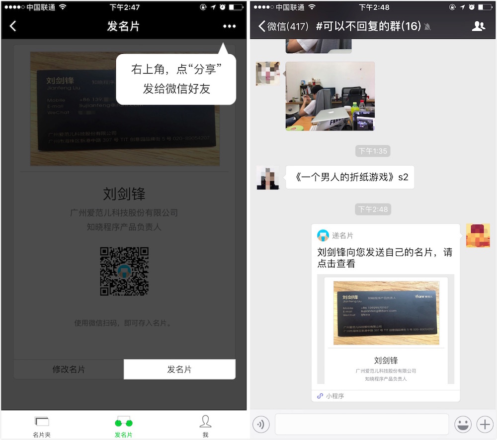 名片生成之后,你有這幾種方式,與別人交換自己的名片: